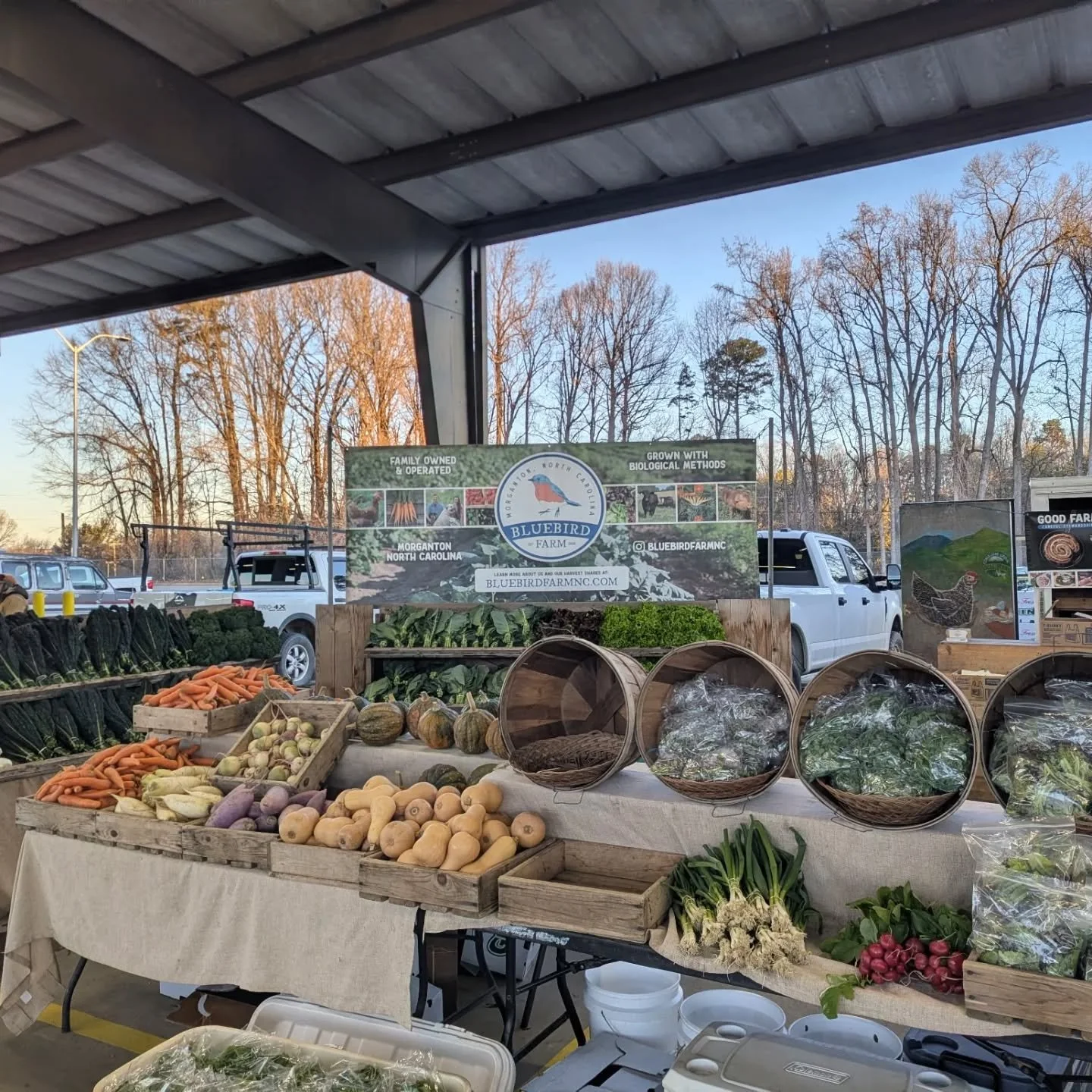 Year round. Except for Sat after Thanksgiving. Look for our stand in open air Building A, about the 5th stand down on the right as you drive in. Look for our bluebird. 1801 Yorkmont Rd, Charlotte, NC 28217