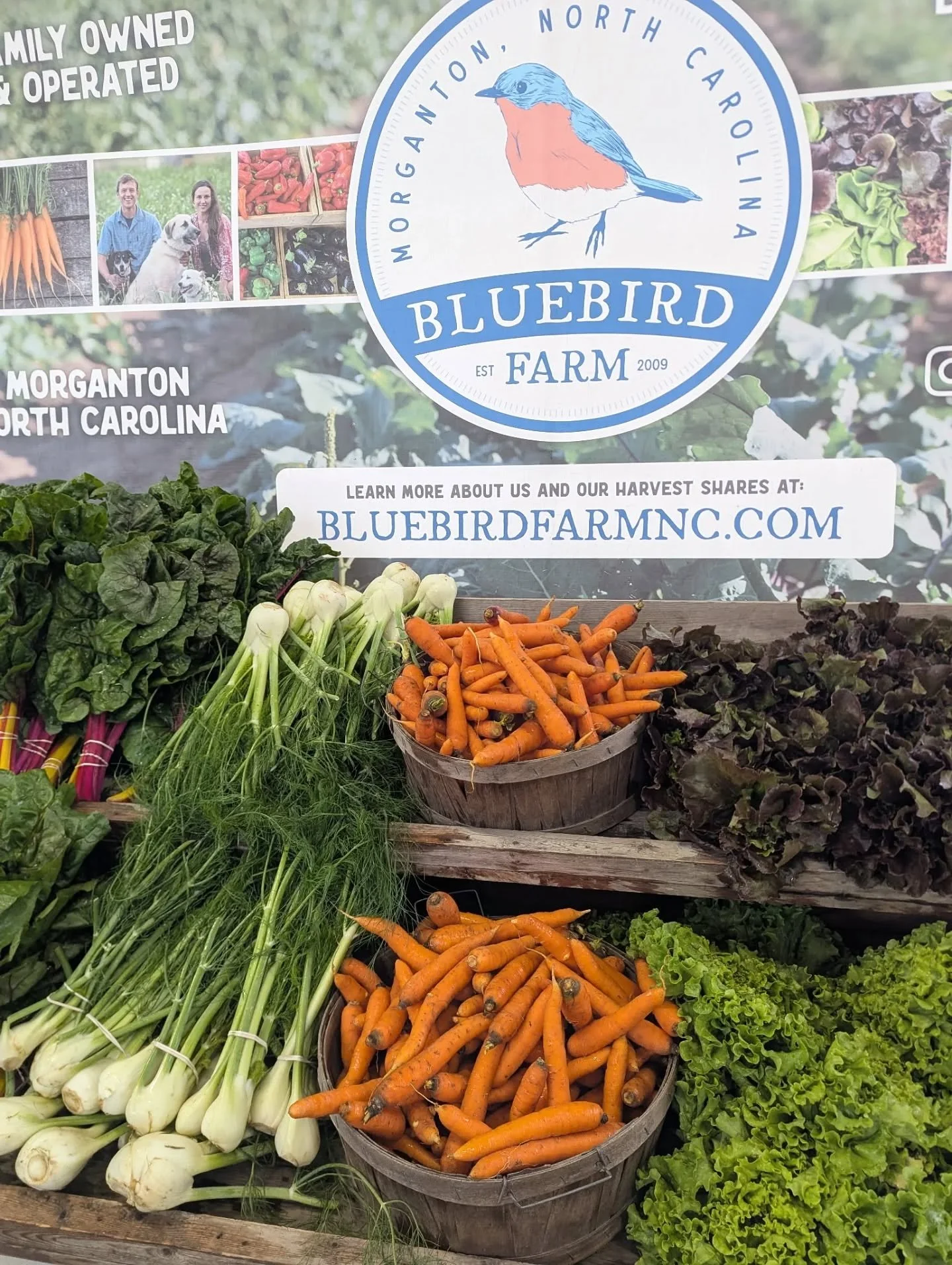 Bluebird Farm raises healthy, flavorful, vegetables, pastured meats, and eggs using techniques that improve the health of our land and contribute to a diverse farm ecosystem. Our meat animals are fed certified organic grains.